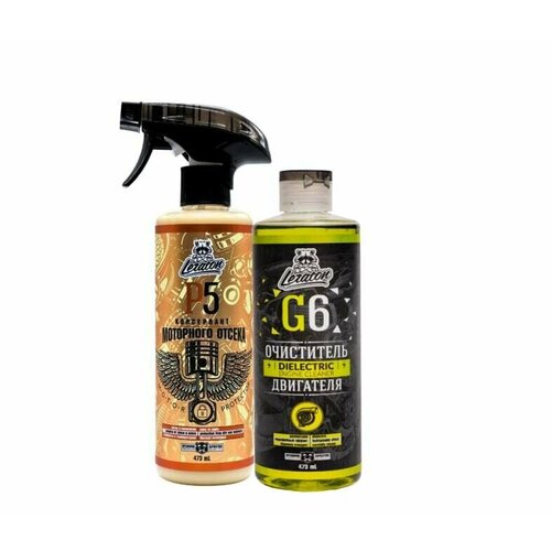G6: Средство для очистки двигателя на основе очищенных нефтяных фракций, мощных эмульгаторов и диспергаторов. Состав не проводит электрический ток, что исключает замыкание контактов электрических систем автомобиля. Высокая вязкость состава позволяет средству долго удерживаться на вертикальных поверхностях с целью максимально полного эмульгирования и растворения загрязнений. Различные типы активных компонентов обеспечивают высокую эффективность средства на масляных и минеральных загрязнениях. Специальные добавки позволяют удалить средство минимальным количеством воды и предотвращают образование коррозии после мойки.Способы применения: Продукт использовать без разведения. Нанести на поверхность с помощью триггерного распылителя или пневмораспылителя (мовильницы). Оставить на 5-10 минут, при необходимости использовать кисти для детейлинга, чтобы удалить стойкие загрязнения. Смыть обильным количеством воды. При необходимости повторить процедуру. P5: Средство предназначено для консервации подкапотного пространства после мойки. Вытесняет воду из труднодоступных мест и обладает гидрофобными свойствами. Создает пленку и защищает от влияния окружающей среды.Способ применения: Состав наносится без разведения при помощи мовильницы или распылителя. Выждать 10 минут. Удалить остатки средства и располировать микрофибровой салфеткой.
