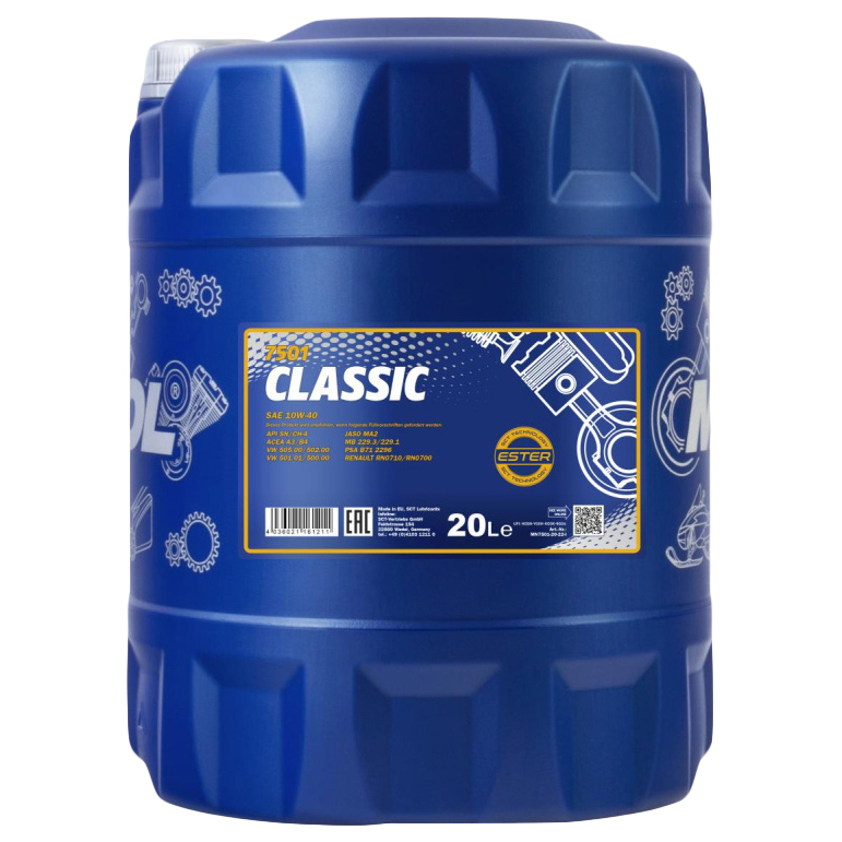 7501-20 Mannol Classic 10W40 20 Л. Полусинтетическое Моторное Масло 10W-40