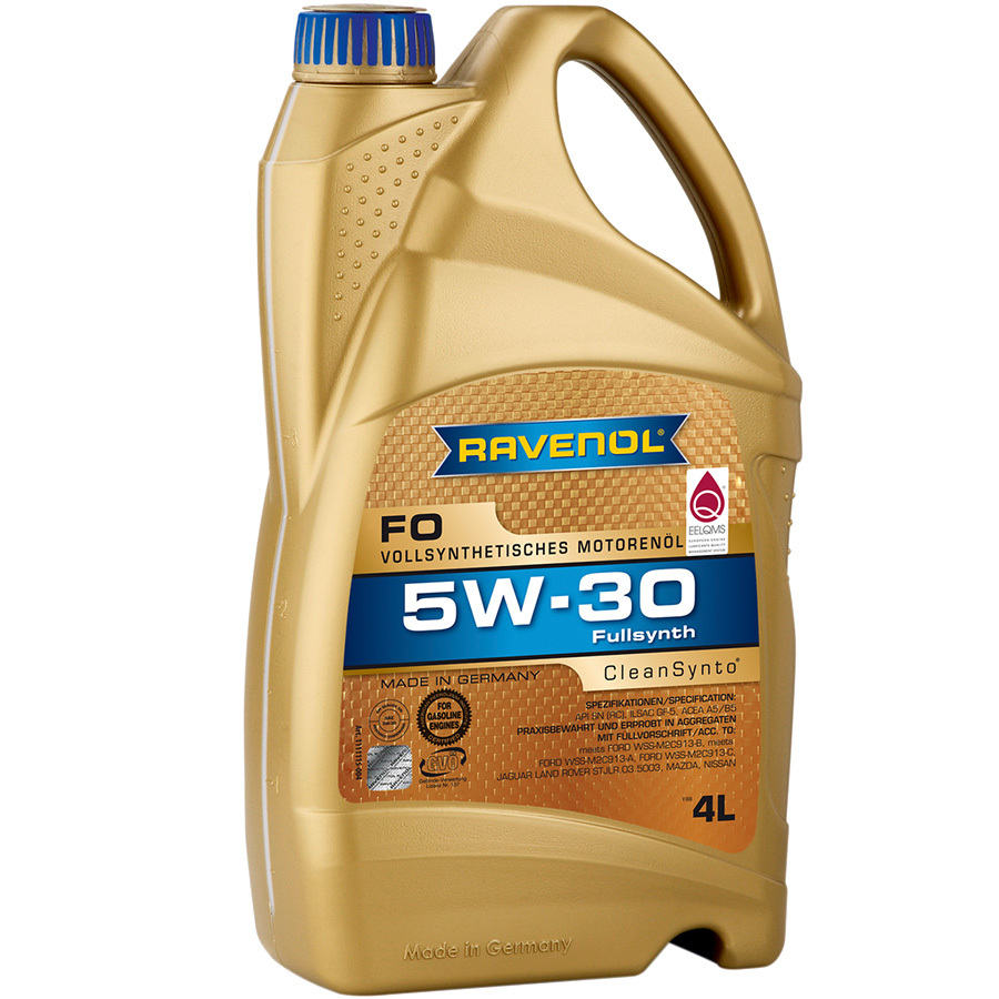 Ravenol FO 5W-30 — легкотекучее всесезонное синтетическое масло, изготовленное по технологии CleanSynto®. Подходит для бензиновых и дизельных двигателей легковых автомобилей, в том числе оборудованных турбонаддувом, прямым впрыском, системой нейтрализации выхлопных газов.  Основные преимущества — высокий класс вязкости, гарантия идеальной чистоты двигателя и сниженного расхода топлива, улучшенные антикоррозийные, противоизносные и антиокислительные свойства. Эффективно Комплект уникальных присадок с полимерными добавками гарантирует создание плотной и прочной масляной плёнки, которая надёжно защищает от отложений, коррозии, шлама, минимизирует силу трения и износ подвижных деталей, предотвращает перегрев силового агрегата и гарантирует его плавный пуск при низких температурах {REGION.prepositional|before: ' в '; after: ''}. Экологично Низкое содержание в составе золы, серы и фосфора делает моторную жидкость максимально безопасной для окружающей среды и катализаторов. Долговечно Качественные базовые компоненты, дополненные многофункциональными присадками, гарантируют стабильность основных эксплуатационных и технических показателей. Частая замена масла не потребуется, поскольку оно прекрасно сохраняет свои свойства на протяжении всего срока использования. Купите Ravenol FO 5W-30 в магазине «Колёса Даром» с гарантией и сертификатами по лучшим ценам. Доставка заказов {REGION.prepositional|before: ' в '; after: ''} и другие населённые пункты России.