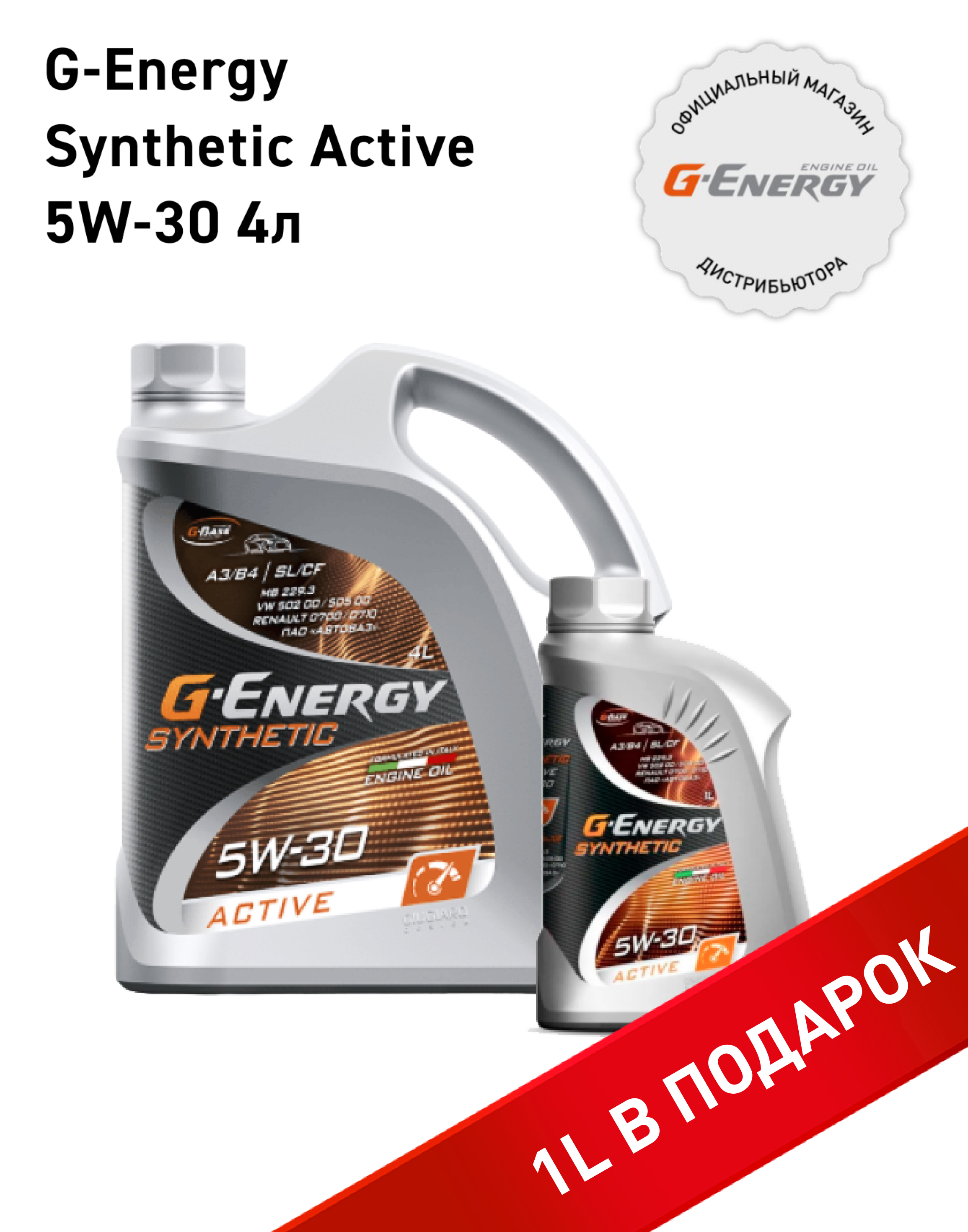 Набор моторных масел G-Energy Synthetic Active 5W-30, канистра 4л+1л