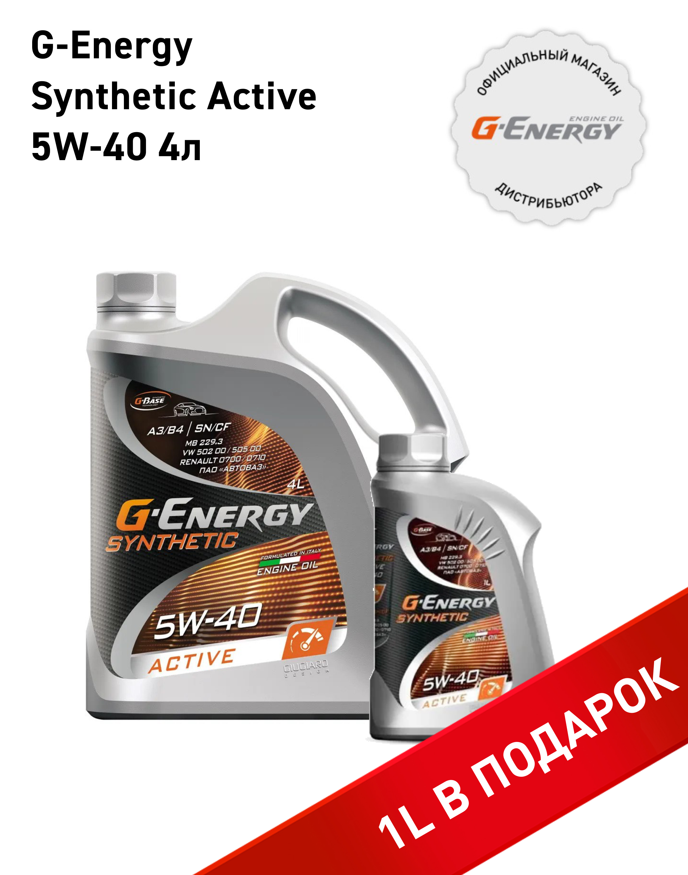 Набор моторных масел G-Energy Synthetic Active 5W-40, 4л+1л