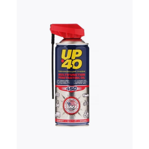 Смазка проникающая с трубкой UP-40 (WD-40) универсальная 100 мл UP-40 ( WD-40) Новейшая формула смазки со сверхвысокой проникающей способностью, быстро воздействует на ржавчину, освобождает тугие резьбовые соединения , прикипевшие, заклинившие детали. Высококачественная смазка глубоко проникает в трущиеся детали, обеспечивает их подвижность, предотвращает заедания и скрипы. Эффективно вытесняет воду и лед, придает водоотталкивающие свойства, предотвращает дальнейшее обледенение. Легко удаляет битум, смолы, клей, трудно выводившуюся въевшуюся грязь. Защищает от коррозии и окисления, применяется для консервации металлических поверхностей. В комплекте имеется трубочка для проникновения в труднодоступные места.