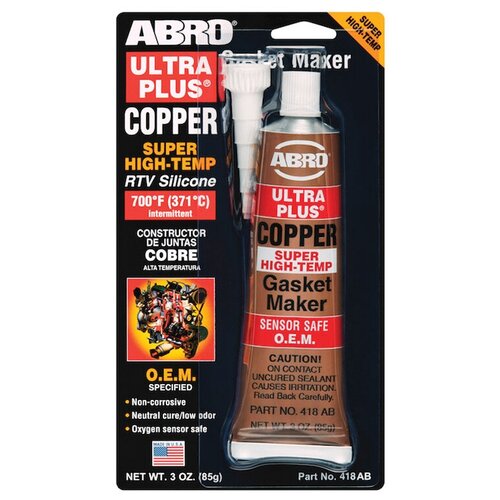 Силиконовый герметик для ремонта автомобиля ABRO 418-AB-R прокладок O.E.M. высокотемпературный, 0.085 кг медь