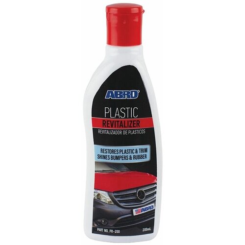 Восстановитель пластика - эффективное средство для восстановления насыщенного цвета и блеска. Обновляет и восстанавливает яркость и глубину цвета резины и неокрашенного пластика. Идеален для шин, резиновых бамперов и молдингов. Защищает от УФ-лучей, выцветания, помутнения и растрескивания. Препятствует оседанию пыли. Придает поверхности стойкий "влажный блеск" на несколько недель. Обрабатываемая поверхность должна быть сухой и чистой. Нанесите средство на губку или сухую чистую ткань и распределите по поверхности. Не используйте на коже. Дайте средству подсохнуть и при необходимости разотрите салфеткой из микрофибры ABRO. Меры предосторожности: избегать вдыхания, попадания в глаза и на кожу. При попадании в глаза или на кожу промойте большим количеством воды. При проглатывании не вызывайте рвоту, немедленно обратитесь к врачу. Хранить в прохладном, хорошо вентилируемом месте, вдали от прямых солнечных лучей. Беречь от детей. Состав: силиконовое масло, карбоксивиниловый полимер, триэтаноламин, светлое минеральное масло, дистиллированный глицерин, вода, запатентованные добавки. Срок годности: 120 месяцев. Сделано в Бразилии. Объем: 200мл.