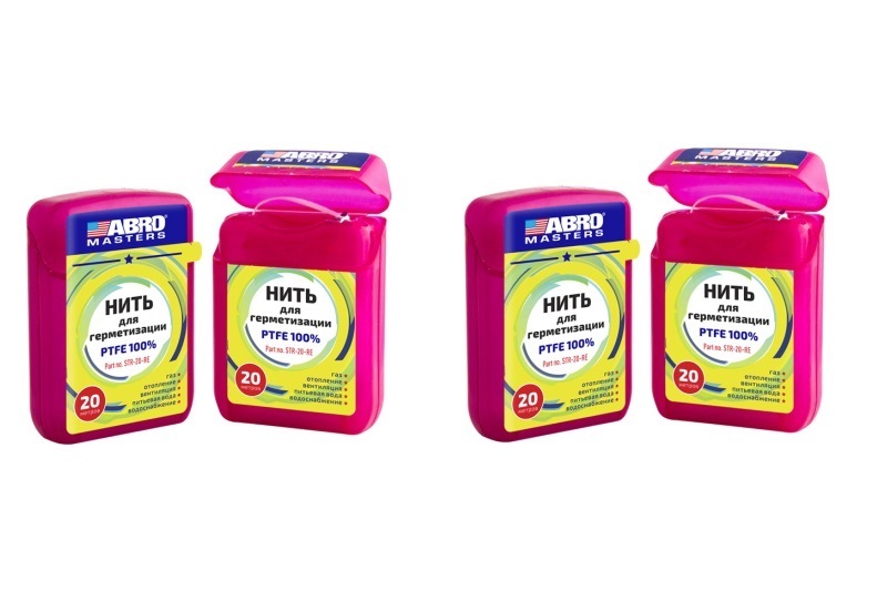 Нить для герметизации ABRO MASTERS предназначена для уплотнения и герметизации резьбовых соединений. Применяется в системах тепло-, газо-, водоснабжения, для трубопроводов, транспортирующих питьевую воду, систем вентиляции, в холодильных установках, для монтажа и ремонта масло-, бензопроводов и т. д. Предназначена для металлических и пластиковых труб диаметром не более 15 см. Свойства: • обеспечивает мгновенную герметизацию соединения; • материал нити не разрушается под воздействием щелочей, кислот, смеси азотной и соляной кислоты; • позволяет регулировать резьбовые соединения после сборки до 180? без потери герметичности; • обладает термо- и химической стойкостью; • устойчива к грибкам и бактериям; • защищает от образования коррозии; • рабочая температура: от -40 до +150?С; • рабочее давление: 230 psi; • обеспечивает долгий срок службы уплотнений; • проста и удобна в использовании; • изготовлена из экологически безопасного материала; • упакована в практичный контейнер с ножом для отрезания нити.