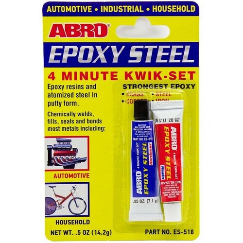 двухкомпонентный эпоксидный клей с упрочняющей добавкой из стального порошка.Сфера применения:используется для химической сварки, заполнения, герметизации и склеивания дерева, пластика и большинства металлов, включая латунь, сталь, медь, железо, и т. п. Может применяться для сломанных велосипедов, растрескавшихся картеров коробки передач, тормозных колодок, всасывающих труб, поврежденных шпоночных канавок, трещин в обшивке, растрескавшейся батареи, бензобаков.Свойства:• время схватывания — 4 минуты;• создает сверхпрочное соединение;• устойчив к бензину, антифризу и большинству растворителей;• невоспламеняемый;• склеенные изделия можно эксплуатировать при температуре от -40°С до +121°С.