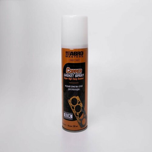Герметик-спрей медный для прокладок ABRO MASTERS 200 МЛописаниеВысокотемпературный герметик прокладок с содержанием меди.сфера примененияПрименяется в качестве усиливающего средства автомобильных и мото- прокладок (прокладок головок блока цилиндров, выпускных коллекторов, фланцев турбокомпрессора и других узлов, работающих в условиях высоких температур).свойства• Герметизирует и уплотняет соединения, в том числе резьбовые, предотвращает заклинивание. • Соответствует требованиям OEM (производителей оригинального оборудования). • Диапазон рабочих температур от -45 до +315°С. • Медная пыль в составе улучшает теплопередачу, препятствует прогоранию прокладки. • Позволяет зафиксировать прокладку даже на вертикальных поверхностях деталей. • Препятствует смещению и выдавливанию прокладки в процессе сборки узлов. • Заполняет и выравнивает незначительные дефекты поверхности. • Особенно эффективен для герметизации непористых поверхностей. • Устойчив к воздействию всех видов автомобильных жидкостей, в том числе бензина.применение1. Очистите деталь от грязи и следов масла. 2. Хорошо потрясите баллон перед использованием в течение 1 минуты. 3. Удерживайте баллон вертикально на расстоянии 15−25 см от поверхности. 4. Равномерно распылите средство на обе стороны прокладки, фланца или на резьбовое соединение. 5. Перед нанесением следующего слоя подождите 30 секунд, чтобы герметик немного подсох. 6. После использования поверните баллон вверх дном и прочистите распылитель. Для лучшего результата баллон должен быть комнатной температуры. Периодически встряхивайте баллон во время использования.составАцетон, н-бутан, метилэтилкетон, пропан, толуол, медь, метилизобутилкетон.