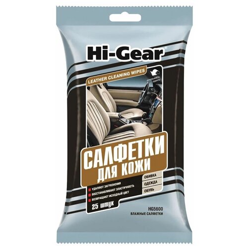 Салфетки влажные для салона "HI-GEAR" (для кожи) (25 шт.)