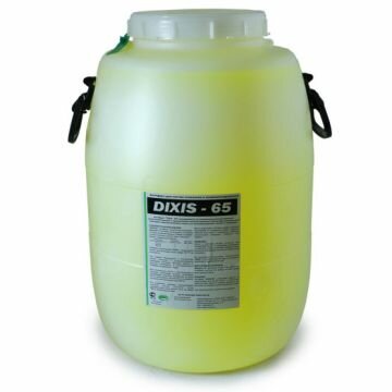 Теплоноситель Dixis -65 / 50 кг антифриз для систем отопления Антифриз Диксис минус 65 производится на основе высококачественного моноэтиленгликоля с применением запатентованного пакета функциональных присадок, обеспечивающих защиту от образования накипи, коррозии и пенообразования. Теплоноситель Диксис 65 с началом кристаллизации 65*С. Его можно использовать в исходном состоянии в районах Крайнего Севера и в разбавленном виде районах с умеренным климатом.  Для систем с естественной циркуляцией необходимо разбавлять антифриз Диксис 65 перед заливкой в контур, для разбавления можно использовать водопроводную воду. При герметизации соединений не допускается использование льна и краски, не рекомендуется использование антифриза в системах с оцинкованными трубами. Срок хранения 5 лет. Не допускается попадание прямых солнечных лучей. Основные преимущества теплоносителя «DIXIS-65»:высокая морозостойкость - исключает разрушение элементов теплообменных систем при замерзании;идеальное состояние отопительной системы в диапазоне от -65°C до +95°C;возможность разбавления простой водопроводной водой;не вызывает коррозию стали, чугуна, меди, латуни, алюминия и припоя;способность удалять и предотвращать появление накипи;не наносит вреда уплотнителным материалам;пожаробезопасен;совместим с пластиковыми и металлопластиковыми трубами и уплотнителями;срок эксплуатации не менее 5 лет;приготовлен на основе качественного сырья;100% выходной контроль качества продукциии; Пропорции при разбавлении водой, теплоноситель/вода (части): Минус 40      5 /1 Минус 30       2 /1 Минус 20       1 /1