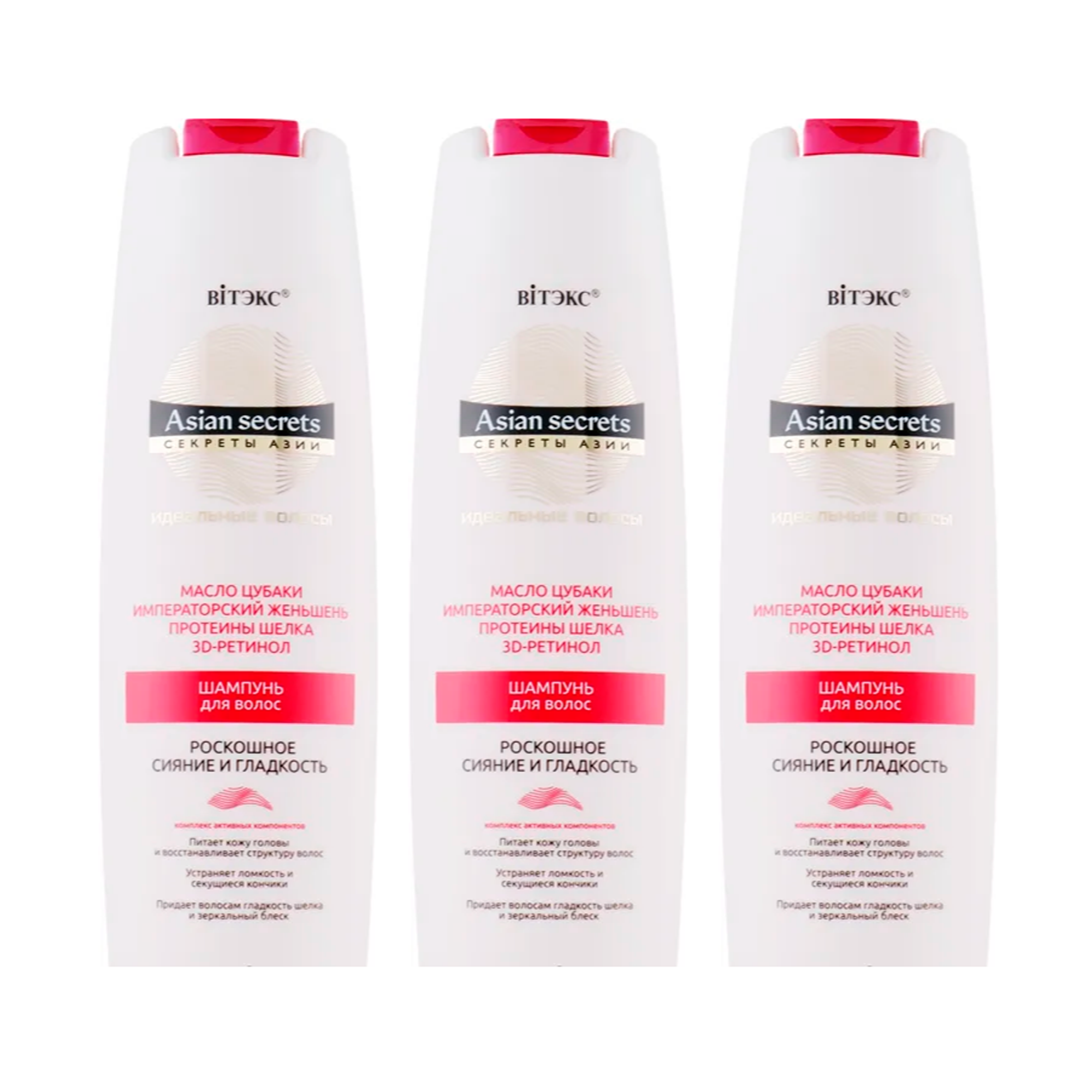 Шампунь для волос Витэкс Секреты Азии Роскошное сияние и гладкость 400 мл 3шт