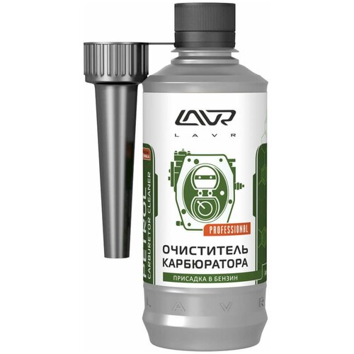 Очиститель карбюратора присадка в бензин (на 40-60л) с насадкой LAVR Carburetor Cleaner Petrol 310мл 310мл Присадка направленного действия для очистки карбюраторов.Эффективно и безопасно удаляет отложения в жиклерах, топливных каналах и форсунках ускорительного насоса.Активируется в зонах высоких температур прогретого двигателя, поэтому гарантированно не засоряет карбюратор загрязнениями из топливного бака, топливопроводов и фильтров.Очищает впускные клапаны и детали камеры сгорания.Способствует связыванию воды в бензине, предупреждая образование ледяных пробок, и защищает от коррозии. ПрименениеЗалить в топливный бак непосредственно перед заправкой. Израсходовать бензин без дозаправки. Упаковка препарата рассчитана на 40-60 литров бензина. Рекомендуется использовать каждые 1,5-3 тыс. км пробега