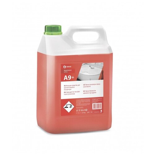 Моющее средство для деликатной очистки Grass Apartment Series A9+ 6 кг (концентрат). Назначение: концентрированное кислотное моющее средство для ежедневной уборки, чистки и ухода за акриловыми и эмалированными ваннами, душевыми кабинами, раковинами, кранами, кафельной плиткой, унитазами, писсуарами. Средство удаляет известковый налет, ржавчину. Можно использовать для гостиниц, ресторанов, офисов, на объектах пищевой промышленности, предприятиях общественного питания, в медицинско-профилактических, санаторно-курортных, детских, дошкольных и других аналогичных учреждениях Гелеобразная структура моющего средства обеспечивает экономичный расход. Дозировка: концентрат разводится 1:10. Способ применения: готовый раствор распылить на губку или салфетку и очистить. Потереть влажной салфеткой и отполировать поверхность. Состав: 30%: вода очищенная, лимонная кислота; 5, но <15% неионогенные ПАВ; <5%: акриловый сополимер, ароматизирующая добавка, краситель. Срок годности: 24 месяца с момента производства (при соблюдении условий хранения рекомендованных производителем). Значение pH 1-% раствора - 2.