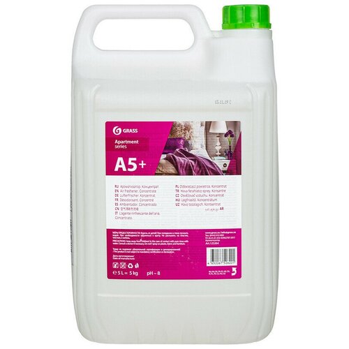 Средство для ароматизации воздуха Grass Apartment series A5+ 5л Назначение. Концентрированное средство предназначено для дезодорации воздуха. Экономично в применении, надолго оставляет свежий аромат. Рекомендовано для использования в гостиничном хозяйстве, в офисах и в быту. Способ применения. Используется в виде водного раствора в концентрации 1-1,5% (10-15 мл / 1 л воды. Готовый раствор распылить с помощью триггера по направлению вверх и центр комнаты. Состав: очищенная вода, неионогенные ПАВ, ароматизирующая добавка, метилхлороизоциазолинон и метилизоциазолинон Срок годности: 1,5 года с момента производства (при соблюдении условий хранения рекомендованных производителем)