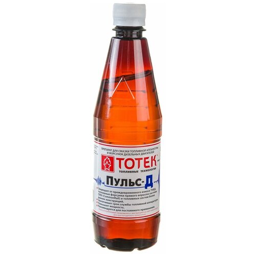 Смазывающая присадка для ДТ тотек Пульс-Д на 250л, 0.5л PULD05250 новейший препарат в области топливной автохимии, предназначенный для компенсации недостаточности смазывающих свойств. Долговечность работы современных топливных форсунок и насосов возрастёт до двух и более раз. В целях защиты от заправки некачественным топливом препарат тотек Пульс – Д необходимо применять регулярно с каждой заправкой топлива. Одновременно тотек Пульс – Д улучшает цикловую производительность форсунок, что положительно сказывается на мощностных и экономических показателях двигателя.