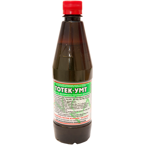 Усилитель моторного топлива (бензина) тотек УМТ на 200л, 0.5л UMT05200 - предназначен для усиления моторных свойств товарных бензинов АИ-80, АИ-92, АИ-95, АИ-98, АИ-100.Уменьшает расход топлива до 7% и более.Увеличивает КПД, мощность, крутящий момент ДВС до 7%.Позволяет перейти на использование бензина с более низким октановым числом, например на АИ-80 с бензина АИ-92.Защищает от детонации.Продлевает срок службы свечей, защищает от всех видов отложений, выжигает отложения в катализаторе.Снижает вредность выбросов отработавших газов до 40%Не содержит в составе ферроценов, соединений свинца и марганца.Победитель тестов журнала «За рулем».