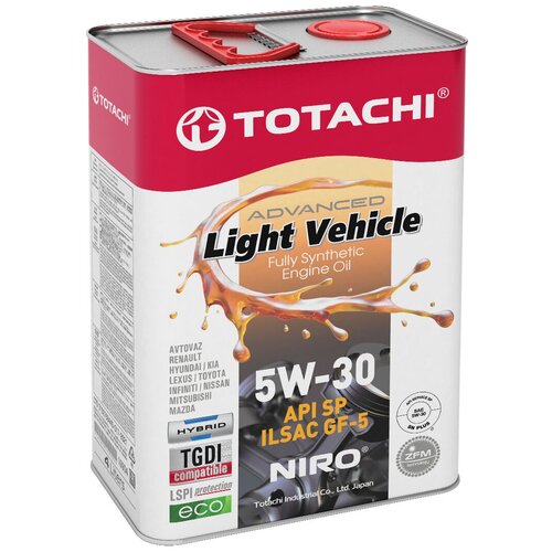 ОписаниеСинтетическое моторное масло класса «премиум» разработано специально для высокотехнологичных 4-тактных бензиновых двигателей легковых и легких коммерческих автомобилей, имеющих рекомендации применения энергосберегающих масел со сниженным уровнем высокотемпературной вязкости HTHS. Формула масла на основе уникальной запатентованной антифрикционной технологии ZFM™ обеспечивает превосходную защиту современным высокоэффективным бензиновым двигателям и отвечает жестким требованиям ОЕМ-производителей по обеспечению длительной работоспособности многокомпонентных каталитических системам TWC. Производится из отборных синтетических базовых масел, обладающих превосходной устойчивостью к высоким рабочим температурам, с добавлением тщательно сбалансированного комплекса присадок, что обеспечивает стабильность свойств в любых погодных условиях и надежную защиту ответственных деталей двигателя в условиях эксплуатации с длительными интервалами сервисного обслуживания. Способствует улучшению экономичности в расходе топлива и снижению расходов на эксплуатацию до 4% по сравнению с вязкостью 15W-40 в зависимости от типа транспортного средства. СвойстваПроизводитель TOTACHIАртикул 4589904524028Состав СинтетическоеВязкость 5W-30Объем, л 4Спецификация ACEA A5, A5/B5, B5Спецификация API CF, sn, SN/CFДопуски (OEM)Спецификация ILSAC GF-5Двигатель