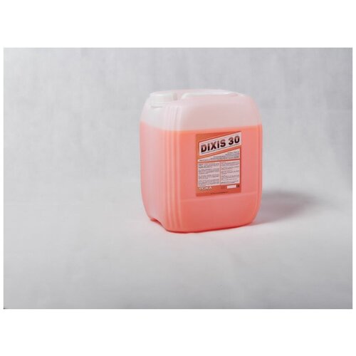 Теплоноситель DIXIS-30 — отечественный антифриз высокого качества, предназначенный для всесезонной работы систем отопления и кондиционирования, а также предотвращения образования на внутренних поверхностях труб накипи, бактериального налета и коррозии. Данный продукт позволяет избежать замерзаний хладагента в циркуляционном контуре отопительных систем при понижении внешних температур до -30°С.DIXIS-30 – антифриз, не требующий разбавления водой и полностью готовый для использования. Специальный состав присадок придает водному раствору моноэтиленгликоля, являющемуся основным компонентом теплоносителя DIXIS-30, эффективные термостабилизирующие, антикоррозионные, антипенные и антиокислительные свойства.Характеристики:Диапазон рабочих температур -30°С ~ +95°С;Начало кристаллизации при температуре -31°С;Плотность теплоносителя 1,070 г/см3 при 20°C;Температура кипения от 106°C (при атмосферном давлении);Цвет розово-желтый (прозрачный).Преимущества использования теплоносителя DIXIS-30 в системах отопления и кондиционирования:Для качественной работы всех узлов охладительной или отопительной системы необходимо высокое качество антифриза, циркулирующего внутри контура, ведь именно от него в большей мере зависит состояние и срок эксплуатации всей системы. Использование DIXIS-30 в качестве теплоносителя позволяет значительно увеличить эксплуатационный период и обеспечить надежную защиту системы от замерзания и коррозии, поскольку данный антифриз обладает рядом положительных свойств, а именно:Не разрушает составные элементы теплообменных систем при замерзании;Может использоваться в системах отопления с алюминиевыми, чугунными и стальными радиаторами;Не вызывает коррозию медных, стальных, латунных, алюминиевых элементов системы и припоя;Пожаробезопасен;Предотвращает образование накипи на внутренних поверхностях;Защищает изнутри циркуляционный контур от бактериального налета;Безопасен для пластиковых, медных и металлопластиковых труб;Не разрушает уплотнители из тефлона, резины и паронита.