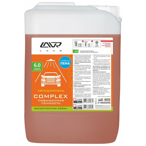 Автошампунь LAVR для бесконтактной мойки COMPLEX повышенная пенность 6,0 (1:40-1:70) 5,8 кг