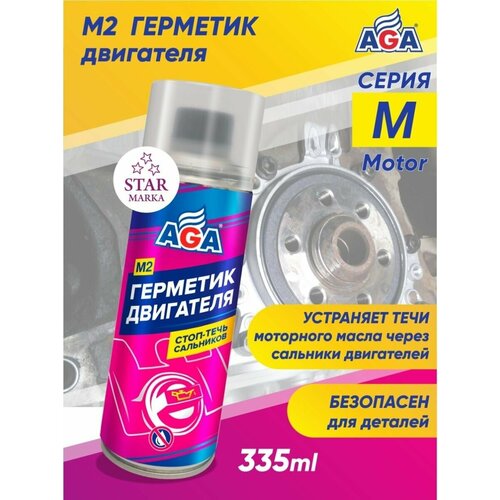 Объем 335 мл. M2 Герметик двигателя AGA902M. Стоп-течь сальников! Предназначен для устранения течи моторного масла через сальники бензиновых и дизельных двигателей всех марок. Предназначен для устранения течи моторного масла через сальники бензиновых и дизельных двигателей всех марок. Без проведения ремонта позволяет устранить течи, возникшие вследствие старения или износа сальников. Плавно уменьшает внутренний диаметр сальников, исключая их коробление. Не изменяет размеры новых сальников. Не влияет на функциональные свойства моторных масел. Сокращает расход масла на угар за счет уплотнения посадки маслоотражательных колпачков на клапанах. Препарат безопасен для каталитических нейтрализаторов, сажевых фильтров и турбокомпрессоров. Применение: Открутите крышку флакона и осторожно удалите защитную мембрану, потянув за кольцо. Залейте непосредственно перед поездкой средство в неработающий двигатель через маслозаливную горловину из расчета одна упаковка на 3–5 литров масла. Умеренные течи должны прекратиться через 22 часа при обычной эксплуатации. Если через 7–10 суток активных поездок течи продолжаются, то сальники крайне изношены и нуждаются в замене. Используйте препарат при пробеге более 100 тыс. км в профилактических целях для предотвращения течей. Состав: более 30 %: высокоочищенная масляная основа; менее 5 %: краситель.
