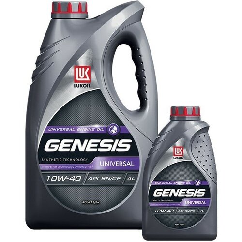Вязкость по SAE : ,10W-40 Вид масла : , Полусинтетическое Вид двигателя : , Бензиновый 4-х тактный / Дизельный Классификация по API : , API SN LUKOIL GENESIS UNIVERSAL 10W-40 – моторное масло на основе синтетических технологий для бензиновых и дизельных двигателях пост гарантийных автомобилей. Производится с применением передовой технологии Synthactive®. LUKOIL GENESIS UNIVERSAL 10W-40 рекомендовано к всесезонному применению в бензиновых и дизельных двигателях (без фильтров сажевых частиц - DPF) автомобилей Mercedes-Benz, Volkswagen, Renault, а также KIA, Hyundai, Toyota, Nissan, Honda, Mitsubishi и других автопроизводителей, требующих использование масел уровня свойств API SN и/или ACEA A3/B3, A3/B4 и класса вязкости SAE 10W-40. Одобрено: API SN Соответствует требованиям: API SL/CF MB 229.3 VW 502 00/505 00 Opel GM-LL-A/B-025 ACEA A3/B3, A3/B4 PSA B71 2300/2294 Renault RN 0700/0710 Fiat 9.55535-G2 Преимущества: максимальная защита - Исключительная защита от износа в жёстких условиях легкий пуск - Синтетическая базовая основа позволяет производить легкий запуск двигателя в условиях низких температур долгий срок службы - Высокое щелочное число препятствует образованию отложений и продлевает срок службы масла