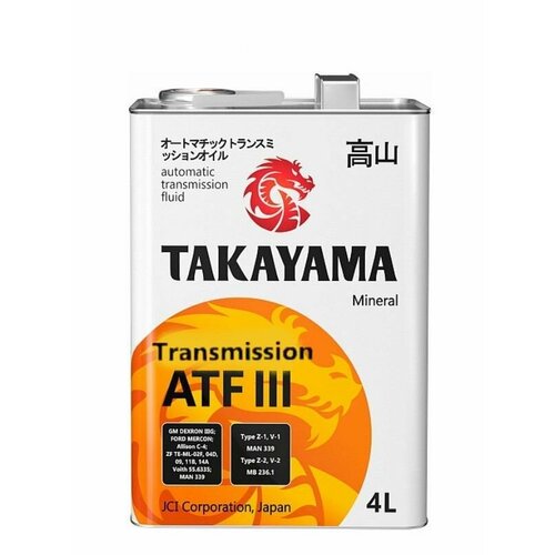 Масло трансмиссионное TAKAYAMA Transmission ATF lll 4 л минеральное