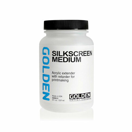 Silkscreen Medium - это водоразбавляемая система, разработанная для использования с акриловыми красками GOLDEN. Это увеличивает время работы и замедляет высыхание на сетке.