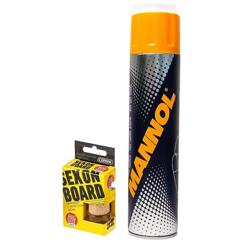 Ваши автомобильные сиденья, обивка диванов, пуфиков сильно загрязнились? Вы устали от мучительных поисков лучшего средства? Но выкинуть жалко или вы хотите привести вещи в пригодный для них вид? Тогда Вас спасет Пенный очиститель (сухая химчистка) MANNOL Polster-Schaum, а после чистки, для придания приятного аромата обрабатываемым поверхностям Вам поможет ароматизатор дерево SEX ON BOARD аромат розы с цитрусовыми нотами CONTEX.Пена высокоэффективно очистит ваш салон или обивку мебели от разнообразных загрязнений и пятен с ковровых покрытий, тканей и т. д. Возвратит естественный цвет, восстановит внешний вид и поднимет ворс, а также он сможет устранить неприятные запахи и освежит воздух в машине и в доме. На крышке очистителя находится щетка, с её помощью выполнить качественную уборку станет еще проще. Предупреждает повторное загрязнение благодаря антистатическим свойствам.Дополнит этот комплект ароматизатор дерево SEX ON BOARD аромат розы с цитрусовыми нотками CONTEX. Он прост в использовании и достаточно стойкий. Этот уникальный ароматизатор наполнит салон вашего автомобиля и помещения утонченным ароматом розы, окутанной цитрусовыми ноткам, которые перенесут Вас в сады юга Франции. Применение пенного очистителя:Пропылесосить салон автомобиля;Встряхнуть баллон;Нанести пенное средство на загрязнения;Тщательно растереть щеткой;Через два часа удалить остатки средства с обивки;Повторно пропылесосить салон;Преимущества пенного очистителя:Многофункциональное средство;Высокоэффективно удаляет разнообразные загрязнения;Возвращает естественный цвет ;Восстанавливает внешний вид тканей;Поднимает ворс;Устраняет неприятные запахи;Предупреждает повторное загрязнение;Удобная щетка;Большой объем;Удобен в применение,Преимущества ароматизатора:Стильный дизайн;Стойкий аромат;Уникальный и неповторимый запах;Перенесут Вас в сады юга Франции; Утонченный аромат розы, окутанной цитрусовыми ноткам;Хорошо устранит неприятный запах; Удобное крепление с регулировкой.