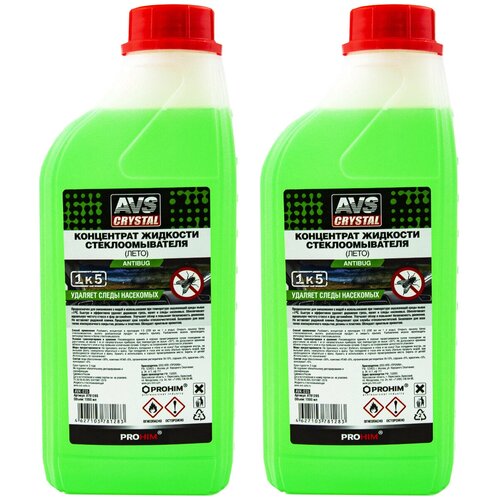 Жидкость стеклоомывателя летняя 1л AVS AVK-035 концентрат, омыватель стекол Мухомой/ стеклоомыватель летний (омывайка летняя), комплект A78128S(2)