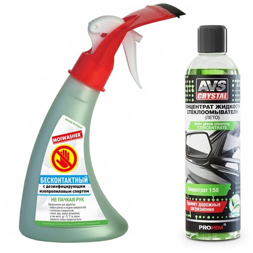 Жидкость стеклоомывателя летняя 250мл AVS AVK-663 концентрат + Очиститель стекол с водосгоном для окон и зеркал 350мл MOIWASHER A07591S/WBM 1110007