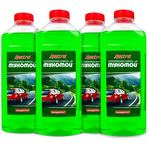 Жидкость стеклоомывателя летняя 1л SPECTROL концентрат, омыватель стекол Мухомой / омывайка для машины / летний стеклоомыватель комплект 4шт 9652(4)