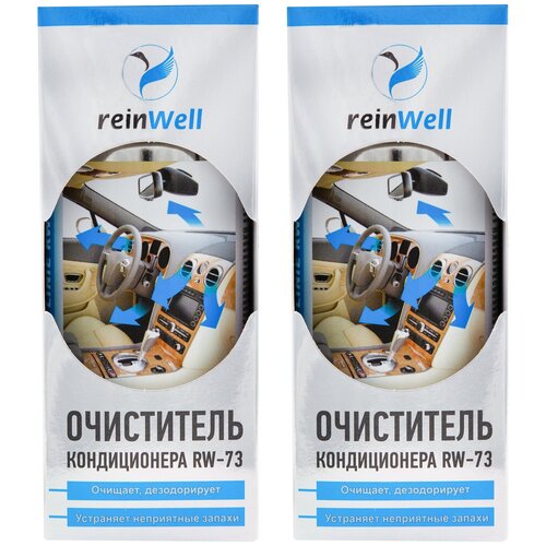 Если при включении кондиционера в Вашем автомобиле появился неприятный запах, то есть риск не только испортить атмосферу салоне, но и есть риск навредить своему здоровью. Чтобы избавить кондиционер от этого "недуга", на помощь придет очиститель кондиционера - ликвидатор запахов в салоне автомобиля REINWELL RW-73 (очиститель системы вентиляции аэрозоль)!С помощью очистителя осуществляется дезинфекция испарителей и воздушных каналов автомобильных кондиционеров. Очиститель профессионально справляется со своей задачей. Он мгновенно устраняет накопившиеся в испарителе вредные микроорганизмы. После этого происходит формирование испарителем кондиционера устойчивой защитной дезинфицирующей пленки на поверхностях. Пленка затрудняет накопление и размножение вредных микроорганизмов. После использования очистителя из кондиционера поступает чистый и свежий воздух. В салоне возобновляются комфорт и свежесть. Обладает выраженным дезодорирующим эффектом. Оставляет свежий аромат ментола и эвкалипта. Используется без разбора системы кондиционирования.Преимущества:Прост в применении;Обладает выраженным дезодорирующим эффектом;Быстро и эффективно устраняет неприятный запах;Обладает бактерицидным и дезодорирующим действием;Эффективное средство для очищения приборной панели, винила, пластика от любых типов загрязнений;Используется без демонтажа салонного фильтра и разборки системы кондиционирования;Создает приятную атмосферу в салоне автомобиля, за счет содержания в составе натуральных эфирных масел ментола и эвкалипта;Комплект 2 штуки.Способ применения:1. Завести двигатель;2. Закрыть все двери и окна автомобиля;3. Включить обогрев на 5-10 минут;4. Открыть все вентиляционные дефлекторы;5. Перевести систему в режим рециркуляции;6. Установить минимальную температуру, либо температуру приблизительно равную температуре окружающего воздуха, на автомобилях с климат контролем;7. Не включать кондиционер;8. Хорошо встряхнуть баллон, установить его в круглое отверстие коробки под наклоном;9. Поставить на пол в районе воздухозаборника (для уточнения места его расположения см. инструкцию на автомобиль) и направить распылительной головкой в отверстие;10. Нажать на клапан до щелчка, начнется распыление;11. Выйти из автомобиля и закрыть дверь;12. По окончании распыления не открывать двери в течение 10 минут;13. После очистки необходимо дать системе поработать в режиме обогрева еще около 5 минут;14. После обработки проветрить салон в течение 5-10 минут;15. Не находиться в салоне автомобиля во время обработки.