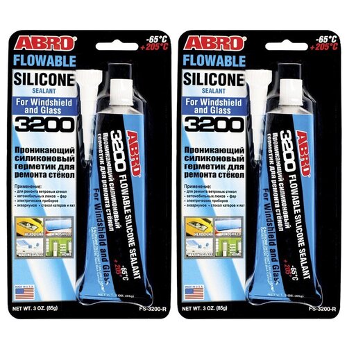 В Вашем автомобиле протекает вода через уплотнители стекол? Появилось пространство между стеклом, и кузовом и через них просачивается вода? Возможно у Вас протекает аквариум? С этими проблемами поможет справиться силиконовый герметик затекающий для ремонта стекол ABRO!Силиконовый герметик содержит специально разработанный состав с повышенной текучестью, он глубоко проникает в трещины и зазоры с последующим формированием прозрачного, прочного, водонепроницаемого слоя.Данный герметик применяется для герметизации стекла, металла, дерева, пластика, резины, керамики, зацементированных поверхностей. Может применяться для ремонта аквариумов. Позволяет решить проблемы протечек лобового стекла, если существует проблема с резинкой - уплотнителем. К тому же, при помощи такого состава, намного удобнее выполнять ремонтные работы с различными участками лобового стекла.Преимущества:Принимает любую форму и успешно выдерживает сжатие, растяжение и сдвиг;Не разрушается под воздействием большинства автомобильных и бытовых жидкостей;Формирует прозрачный, прочный, водонепроницаемый слой;Устойчивость к высоким температурам, вибрациям и влаге;Полностью полимеризуется через 24 часа;Обладает вибро- и термоустойчивостью;Стандарт американского качества;Прост и удобен в применении;Эффективен в использовании;Обладает отличной адгезией;Глубоко проникает в зазоры;Устойчив к деформации;Комплект из 2 шт.