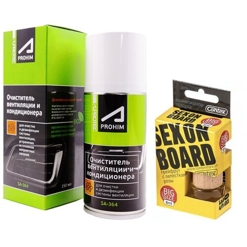 Очиститель кондиционера автомобиля Suprotec A-Prohim SA 364, 150 мл Супротек + Ароматизатор для автомобиля/подвесной CONTEX SEX ON BOARD 122998/786f