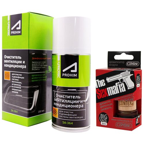 Очиститель кондиционера автомобиля Suprotec A-Prohim SA 364, 150 мл Супротек + Ароматизатор для авто / подвесной CONTEX WARNING SEXOHOLIC 122998/783f