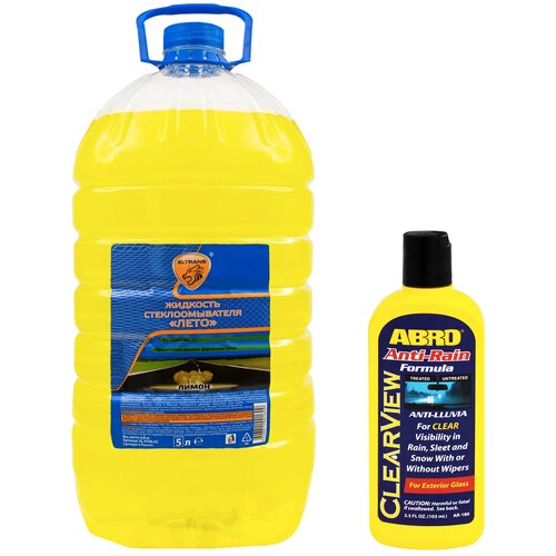 При движении в летнюю жару лобовое стекло покрывается насекомыми, дорожной пылью и другими загрязнениями, которые снижаю обзор и комфорт вождения. С жидкостью стеклоомывателя Eltrans Вы сможете с легкостью очистить стекла и обеспечить их кристальную чистоту, а антидождь ABRO поможет стеклам Вашего автомобиля дольше оставаться чистыми!Летняя жидкость стеклоомывателя ELTRANS предназначена для очистки стекол и фар автомобиля. Состав эффективно и быстро удаляет дорожную грязь, следы насекомых и птичьего помета со стекол автомобиля, тем самым улучшая обзорность и повышая безопасность движения. В состав омывайки входит очищенная вода, которая исключает образование известковых отложений на форсунках стеклоомывателя. Жидкость стеклоомывателя обеспечивает плавное скольжение щеток стеклоочистителя и не оставляет разводов и бликов на стеклах авто.Благодаря использованию современных поверхностно-активных веществ в составе, обладающих высокой моющей способностью, средство обеспечивает удаление стойких загрязнений, в том числе органического происхождения. Стеклоомывающая жидкость безопасно для всех типов лакокрасочного покрытия, резины и пластика. Она так же подходит для очистки тонированных стекол. Омывайка обладает приятным и ненавязчивым ароматом лимона.С антидождем для автомобиля ABRO стекла Вашего автомобиля дольше будут оставаться чистыми, а вождение в непогоду станет еще более комфортным! Средство предотвращает налипание насекомых и создает защитное водоотталкивающее покрытие на стекле, благодаря которому вода сама скатывается под потоком встречного воздуха, тем самым уменьшая необходимость использования щеток стеклоочистителя.Преимущества омывайки:Улучшает обзорность;Проста в использовании;Не оставляет бликов и разводов;Повышает безопасность движения;Обладает приятным ароматом лимона;Продлевает срок службы стеклоочистителей;Облегчает движение щеток стеклоочистителя;Эффективно удаляет дорожную грязь, следы насекомых и птичьего пометаБезопасна для всех типов лакокрасочного покрытия, резины и пластика.Благодаря очищенной воде в составе исключает образование известковых отложений на форсунках стеклоомывателя.Преимущества антидождя:ABRO – стандарт американского качества;Антидождь предотвращает налипание насекомых;Антидождь уменьшает необходимость использования щеток стеклоочистителя;Антидождь создает защитное водоотталкивающее покрытие на стекле, благодаря которому вода сама скатывается под потоком встречного воздуха.