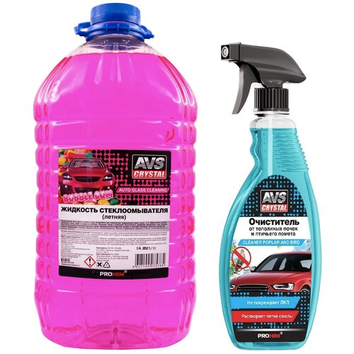 С началом летнего сезона каждый автовладелец сталкивается с необходимостью выбора жидкости стеклоомывателя, которая поможет удалить со стекол авто дорожную пыль следы насекомых и прочие загрязнения. С помощью жидкости стеклоомывателя AVS Вы сможете с легкостью очистить стекла и обеспечить их кристальную чистоту, а очиститель AVS поможет удалить загрязнения с кузова авто!Благодаря своему качественному составу омывающая жидкость AVS эффективно удаляет дорожную грязь, налет, следы насекомых и другие загрязнения различной сложности. Использование стеклоомывателя гарантирует идеальную чистоту стекол и фар, что увеличивает обзор и безопасность движения. Состав является готовым раствором и не требует разведения.Омывайка безопасна для всех типов лакокрасочного покрытия, резиновых и пластиковых элементов. Стеклоомыватель не оставляет на поверхности стекла разводов и радужной пленки. Состав обладает приятным ненавязчивым ароматом BubbleGum. Его использование обеспечивает плавное скольжение щеток стеклоочистителя. Омывайка так же прекрасно подходит для очистки тонированных стекол.С очистителем кузова AVS Вы сможете с легкостью справиться с удалением следов птичьего помета, смолы деревьев, тополиных почек с поверхностей автомобилей, мотоциклов, велосипедов и другой техники. Состав средства не вредит лакокрасочным покрытиям, резиновым и пластиковым деталям. Он тщательно очищает стекла, фары, решетки радиатора, бампера и хромированные детали.Преимущества стеклоомывателя:Улучшает обзорность;Не оставляет разводов и бликов;Повышает безопасность движения;Обладает приятным ароматом BubbleGum;Подходит для очистки тонированных стекол;Безопасен для лакокрасочного покрытия, резины и пластика;Быстро и качественно удаляет дорожную грязь, налет и следы насекомых.Преимущества очистителя:Очиститель удаляет следы птичьего помета, смолы деревьев, тополиных почек с поверхностей;Очиститель безопасен для лакокрасочного покрытия, стекол, резиновых и пластиковых деталей;Не оставляет разводов.Способ применения стеклоомывателя:1. Открыть крышку бачка стеклоомывателя.2. Вылить содержимое флакона в бачок стеклоомывателя и закрыть крышку.Способ применения очистителя кузова AVS:1. Перед применением взболтать.2. Распылить состав на место загрязнений и дать подействовать в течении 2-3 минут. Удалить остатки влажной чистой тканью.3. Для удаления застарелых загрязнений повторить обработку поверхности.Важно! Не использовать на горячих поверхностях.Перед применением на ремонтных покрытиях протестировать стойкость покрытия на малозаметном участке.