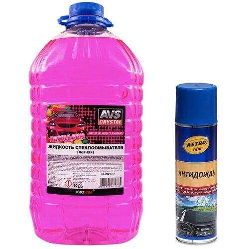 С началом летнего сезона каждый автовладелец сталкивается с необходимостью выбора жидкости стеклоомывателя, которая поможет удалить со стекол авто дорожную пыль следы насекомых и прочие загрязнения. С помощью жидкости стеклоомывателя AVS Вы сможете с легкостью очистить стекла и обеспечить их кристальную чистоту, а антидождь ASTROHIM поможет стеклам Вашего автомобиля дольше оставаться чистыми!Благодаря своему качественному составу омывающая жидкость AVS эффективно удаляет дорожную грязь, налет, следы насекомых и другие загрязнения различной сложности. Использование стеклоомывателя гарантирует идеальную чистоту стекол и фар, что увеличивает обзор и безопасность движения. Состав является готовым раствором и не требует разведения.Омывайка безопасна для всех типов лакокрасочного покрытия, резиновых и пластиковых элементов. Стеклоомыватель не оставляет на поверхности стекла разводов и радужной пленки. Состав обладает приятным ненавязчивым ароматом BubbleGum. Его использование обеспечивает плавное скольжение щеток стеклоочистителя. Омывайка так же прекрасно подходит для очистки тонированных стекол.С антидождем для автомобиля ASTROHIM стекла Вашего автомобиля дольше будут оставаться чистыми, а вождение в непогоду станет еще более комфортным! Средство предотвращает налипание насекомых и создает защитное водоотталкивающее покрытие на стекле, благодаря которому вода сама скатывается под потоком встречного воздуха, тем самым уменьшая необходимость использования щеток стеклоочистителя.Преимущества стеклоомывателя:Не оставляет разводов и бликов;Обладает приятным ароматом BubbleGum;Безопасен для лакокрасочного покрытия, резины и пластика;Быстро и качественно удаляет дорожную грязь, налет и следы насекомых.Преимущества антидождя:Антидождь облегчает удаление со стекол наледи зимой и насекомых летом;Антидождь уменьшает необходимость использования щеток стеклоочистителя;Антидождь создает защитное водоотталкивающее покрытие на стекле, благодаря которому вода сама скатывается под потоком встречного воздуха.Способ применения стеклоомывателя:1. Открыть крышку бачка стеклоомывателя.2. Вылить содержимое флакона в бачок стеклоомывателя и закрыть крышку.Способ применения антидождя ASTROHIM:1. Перед нанесением необходимо тщательно очистить и обезжирить стекло. Причем не как обычно, просто помыв его поверхность, а особо тщательно. Наносить антидождь следует в небольшом количестве при помощи губки или ветоши, круговыми движениями, небольшими участками;2. Надо обязательно дождаться полного высыхания состава;3. Сколько дать просохнуть, нужно установить опытным путем, в зависимости от температуры и влажности в помещении;4. Отполировать поверхность сразу после высыхания. Тщательно выбрать материал для полировки. В идеале подойдет качественная м