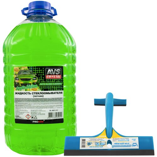 Жидкость стеклоомывателя летняя 5л AVS AVK-723 омывайка для машины + Водосгон для автомобиля двусторонний, универсальный 16 см/9 см A40591S/ZB026