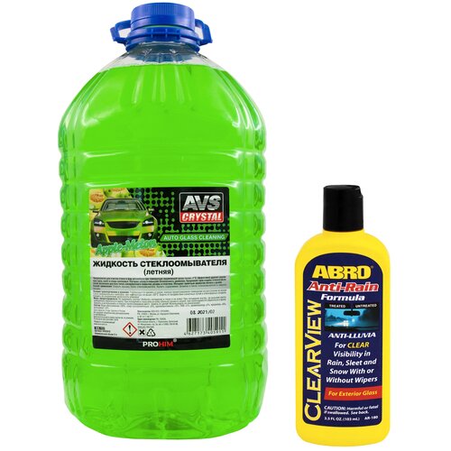 Жидкость стеклоомывателя летняя 5л AVS AVK-723 омывайка для машины + Антидождь для автомобиля ABRO Anti-Rain 103 мл A40591S/AR-180