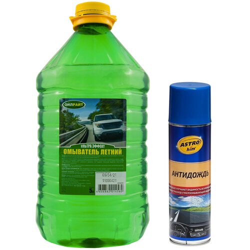 Жидкость стеклоомывателя летняя 5 л OIL RIGHT Ультра эффект / омывающая жидкость (омывайка летняя) + Антидождь для стекол и зеркал автомобиля (защитный спрей для лобового стекла с эффектом антидождя) ASTROHIM 355 мл 5207/АС-893