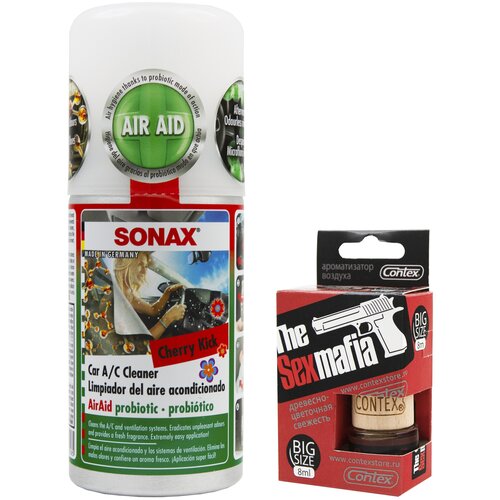 Очиститель кондиционера автомобиля с пробиотиком SONAX вишневый удар 150мл+Ароматизатор для автомобиля CONTEX THE SEX MAFIA комплект PS-013.465/785f