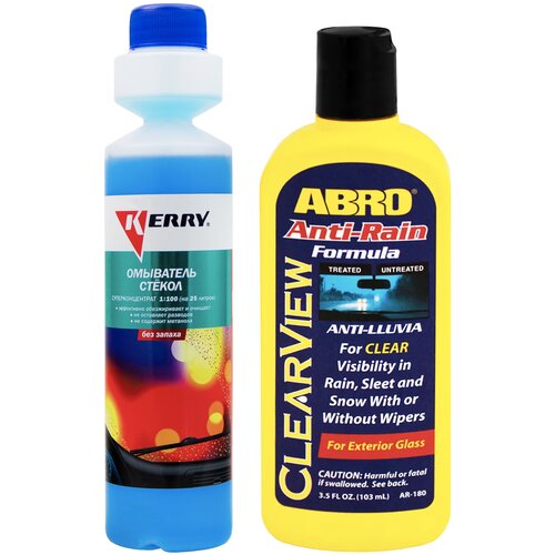 Жидкость стеклоомывателя летняя 270 мл KERRY / омывайка летняя + Антидождь для автомобиля ABRO Anti-Rain 103 мл. Антидождь для стекол; KR-336/AR-180