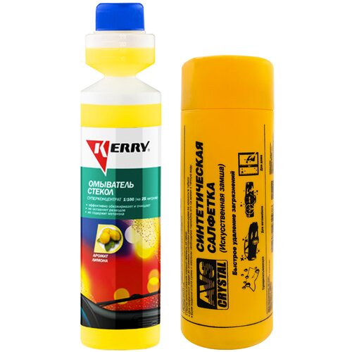 Загрязнения лобового стекла автомобиля считаются злободневной проблемой каждого автовладельца, а с наступлением теплого времени года ко всему добавляются еще следы от насекомых, затрудняющие обзор дороги. Если Вы дорожите комфортом при вождении и хотите, чтобы лобовое стекло Вашего авто было кристально чистым, то Вам на помощь придет летний омыватель стекол концентрат KERRY и искусственная замша AVS!Содержащиеся в составе концентрата поверхностно-активные добавки, обладающие высокой моющей способностью с легкостью справляются с удалением дорожной грязи, масляных пятен, следов насекомых, птичьего помета, смолы растений.Использование жидкости стеклоомыватель KERRY обеспечивает идеальную чистоту фар, лобового и заднего стекол автомобиля. Омыватель улучшает обзор во время движения и не оставляет разводов и радужной пленки. Он безвреден для лакокрасочных покрытий, резиновых и пластиковых деталей. Благодаря составу замши из многослойного армированного поливинилацетатного полотна с добавлением хлопка она не поцарапает вам поверхность автомобиля и при этом моментально впитывает воду. А также самое главное то, что она легка в использовании..Преимущества::Улучшает обзор;;Бутылка с дозатором;;Не содержит метанола;;Не оставляет разводов;;Не оставляет радужной пленки;;Имеет приятный аромат лимона;;1 флакон рассчитан на 25 л. воды;;Суперконцентрированный состав;;Повышает безопасность движения;;Эффективно обезжиривает и очищает;;Предохраняет стекла и щетки от абразивного износа;;Безопасен для лакокрасочных покрытий, резиновых и пластиковых деталей;;Обеспечивает идеальную чистоту фар, лобового и заднего стекол автомобиля..Устойчива к воздействию масла, топлива и очищающих жидкостей;;Подходит для мытья автомобиля и для домашнего использования;;Обеспечит чистую, сухую и блестящую поверхность без разводов и ворсинок;