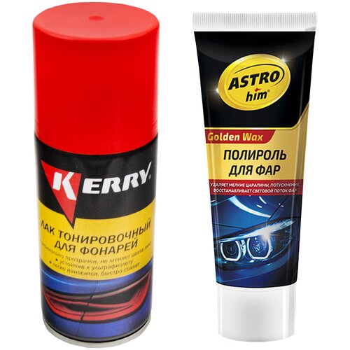 Полироль для фар автомобиля ASTROhim Golden Wax 100мл Астрохим AC-8310 + Лак для тонировки фар автомобиля KERRY 210 мл AC-8310/KR-963.2
