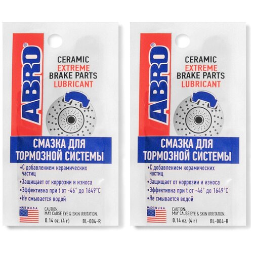 Смазка для тормозной системы (тормозов) высокотемпературная ABRO / Made in U.S.A. / Смазка для суппортов синтетическая 4 г. Комплект 2 шт. BL-004-R(2)