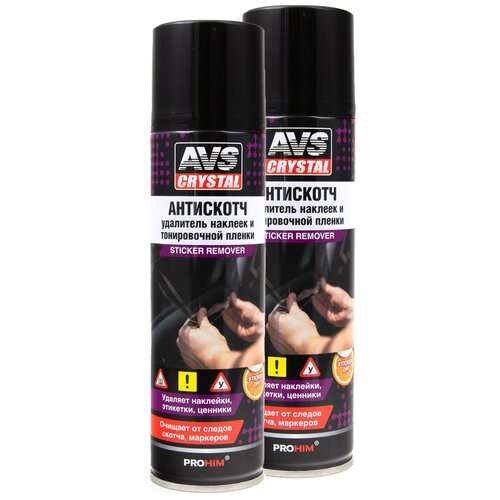 Все сталкивались с ситуацией, когда после удаления какой-либо этикетки, наклейки или скотча на поверхности остается клеевой состав, который убрать достаточно проблематично.Для решения данной проблемы компания AVS выпустила удалитель наклеек и тонировочной пленки "Антискотч" AVK-650. Это средство поможет Вам с легкостью избавиться от всех ненавистных следов и при этом не повредить поверхность.Комплект антискотчей станет незаменимым помощником для быстрого и безопасного удаления: наклеек, тонировочной пленки, самоклеящихся этикеток, липких лент, остатков скотча, жевательной резинки, каучука, следов маркеров, дёгтя.Применяется на любых поверхностях:Стеклянных;Металлических;Пластиковых;Керамических;Окрашенных.Преимущества:Комплект из 2 шт.Устраняет следы от перманентных маркеров и фломастеров.Гелеобразный состав после распыления не стекает с вертикальных поверхностей.Проникает под поверхность наклейки и растворяет клей.Не вызывает коррозию.Подходит для наружных и внутренних работ,Может использоваться в быту.Обладает приятным цитрусовым ароматом.Имеет доступную цену.Прост в применении.