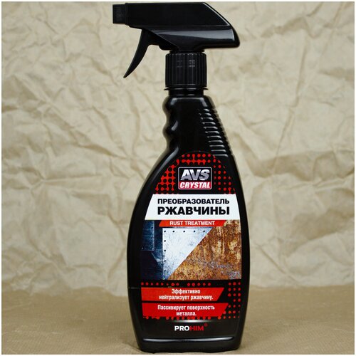 Окислительные реакции разрушают целостность металлов и приводят к появлению ржавчины – это неизбежный процесс, но его можно предотвратить, покрыв материал специальным защитным слоем. Преобразователь ржавчины для авто AVS останавливает процесс коррозии и создает на поверхности металла прочное защитное покрытие.Достает до труднодоступных местЭффективно преобразует ржавчинуКачественный состав с цинкомПреобразователь ржавчины AVS объемом 500 мл, эффективный препарат для скоростного устранения ржавчины представлен в практичном формате с триггером для удобного нанесения. Жидкий состав запросто попадает даже в самые мелкие щелочки. При нанесении образует защитную пленку, что позволяет обрабатываемому металлу прослужить дольше и не разрушаться. Минимальная температура применения этого состава не должна быть ниже + 10 градусов. Преобразует, продукты коррозии на различных поверхностях и изделиях из стали и чугуна при толщине слоя ржавчины до 80 мкм. Вступает в реакцию с продуктами ржавчины, модифицирует их и превращает в несущий слой для покраски. При замораживании не теряет своих свойств. Для удобства использования распылитель устанавливается в 3 вида положения:«SPRAY» – средство распыляется облаком;«STREAM» – средство поддается струей;«OFF» – блокираторСоздает защитную пленку на поверхностиПрепятствует разрушению металлаУдобное нанесениеБлокиратор на распылителе предупреждает случайное нажатие, а удобный курок распыляет средство мягким облаком или струей, позволяет тем самым экономить расход средства. Преобразователь очень удобен для обработки вертикальных и наклонных поверхностей: равномерно и экономно наносится, не течет и не оставляет разводов. Раствор не только удаляет ржавчину и защищает металл от ее повторного появления, но и улучшает адгезию поверхности с ЛКМ. Средство предназначено для обработки крупных стальных изделий: гаражей, крыш, автомобилей, конструкций, имеющих сварные швы и заклепочные соединения. Равномерно распределяется по поверхностиЭкономичный расходНе нужно смыватьСпособ применения:1. Перед применением взболтать.2. Очистить поверхность металла от рыхлой (отслаивающейся) ржавчины.3. Наносить средство на поверхность кистью, валиком или методом распыления при температуре окружающей среды не ниже +10°С на сухую обезжиренную поверхность в два слоя с промежуточной сушкой около 30 мин.4. Окрашивать поверхность можно после полного высыхания поверхности (не менее 30 мин. при температуре +20°С).Температурный диапазон применения: от +10°С до +30°С.При необходимости модификатор можно наносить несколько раз до достижения желаемого эффекта.Содержит кислоту. Рекомендуется работать с применением СИЗ (очки, перчатки) в хорошо проветриваемом помещении