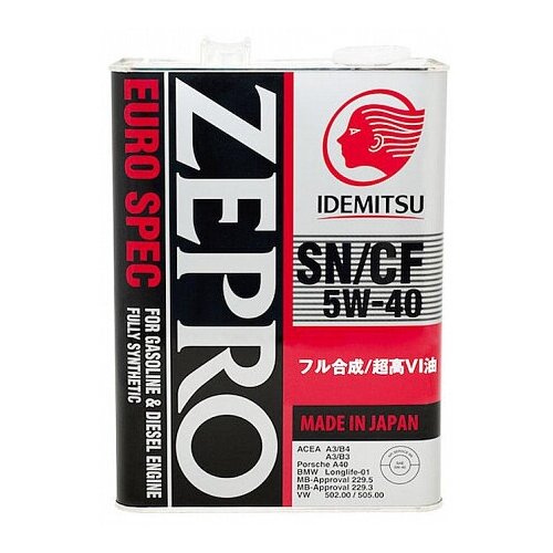 Синтетическое моторное масло IDEMITSU Zepro Euro Spec 5W-40, 4 л