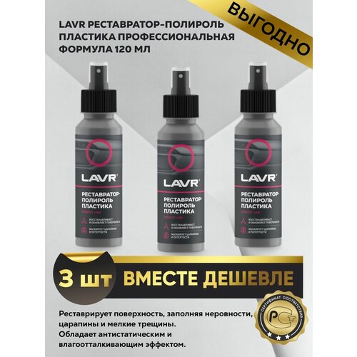 Реставратор-полироль пластика Lavr профессиональная формула 120 мл Ln1459-L эффективно маскирует царапины и другие повреждения поверхностей. Полироль образует защитный полимерный слой на поверхности и придает пластиковым изделия матовый блеск.
