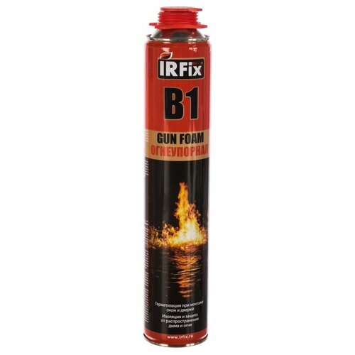 Огнеупорная профессиональная монтажная пена IRFix В1 предназначена для установки, герметизации огнеупорных дверей, оконных блоков, подоконников, стеновых панелей, перегородок. Продукт используют для заполнения пустот, швов, изоляции и фиксации труб, проходных отверстий и проводки кабелей, монтажа конструкций в помещениях с повышенным классом огнестойкости. Однородная структура состава обеспечивает отличную адгезию к рабочей поверхности. Пена подходит для теплоизоляции сетей водопроводов, канализации, центрального отопления, крыш и перекрытий.Преимущества:- IRFix В1 подходит для объемных работ.- Сертифицированная монтажная пена с высокой огнестойкостью.- Эффективно герметизирует и защищает от дыма и газа.- Время высыхания поверхности: 10-16 минут.- Застывшую пену можно окрашивать.- Механическая обработка уже через 30-40 минут. - Температура эксплуатации: от -50 до +90 градусов по цельсию, (кратковременно от -65 до +130 градусов по цельсию).